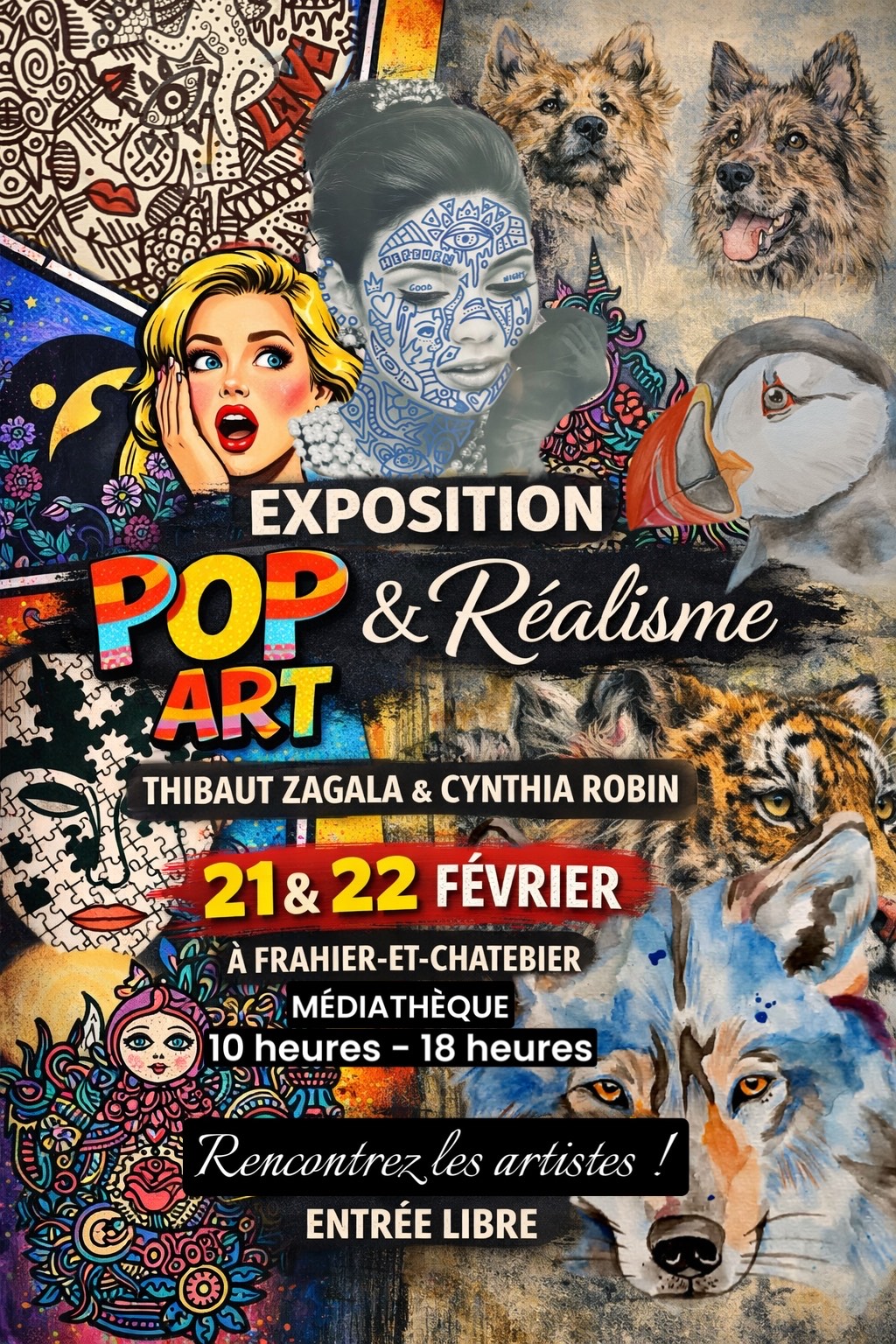 Exposition Pop Art et Réalisme avec Thibaut Zagala et Cynthia Robin.