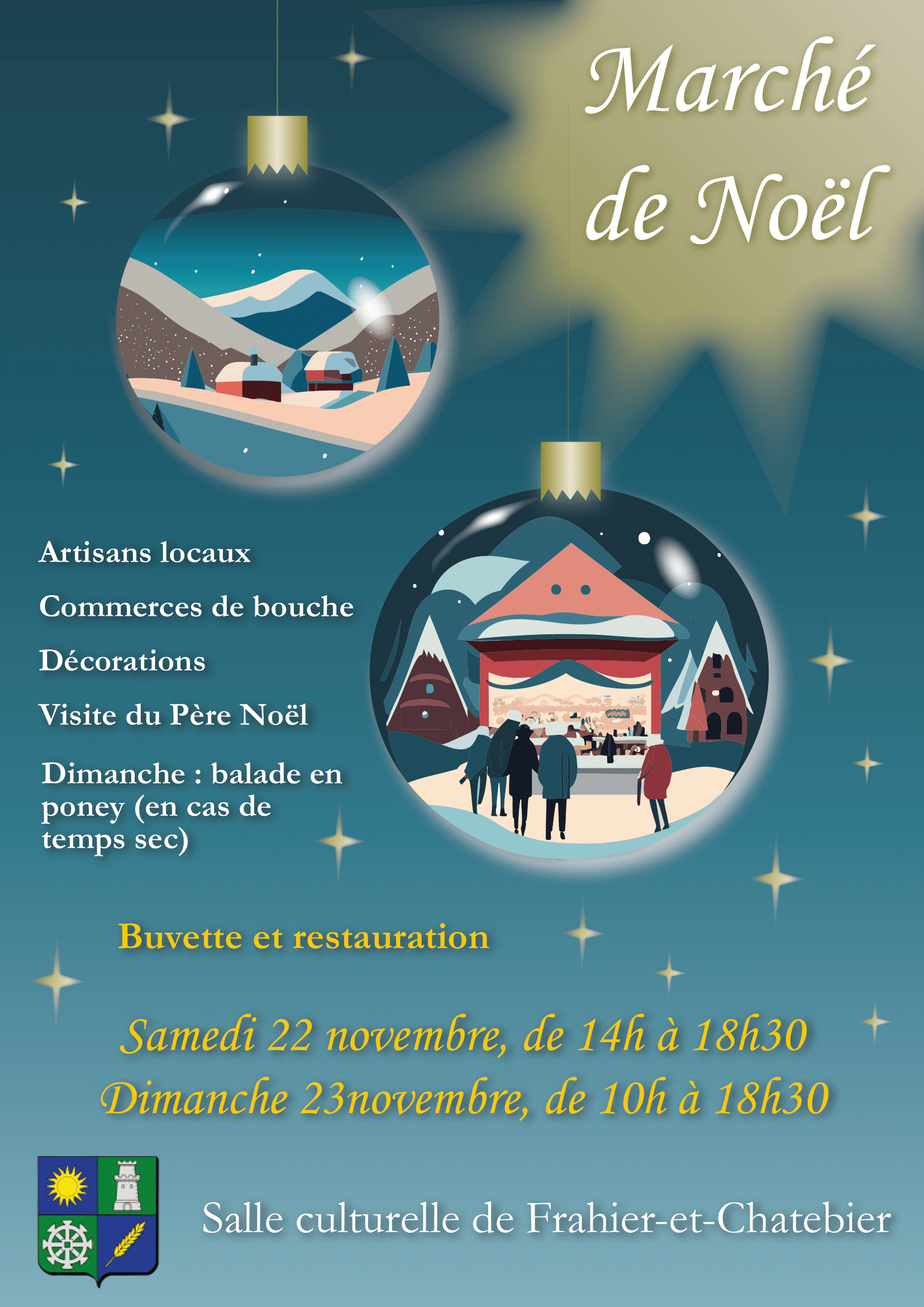 La commune de Frahier-et-Chatebier organise son Marché de Noël samedi 22 novembre de 14h à 18h30 et dimanche 23 novembre de 10h à 18h30.