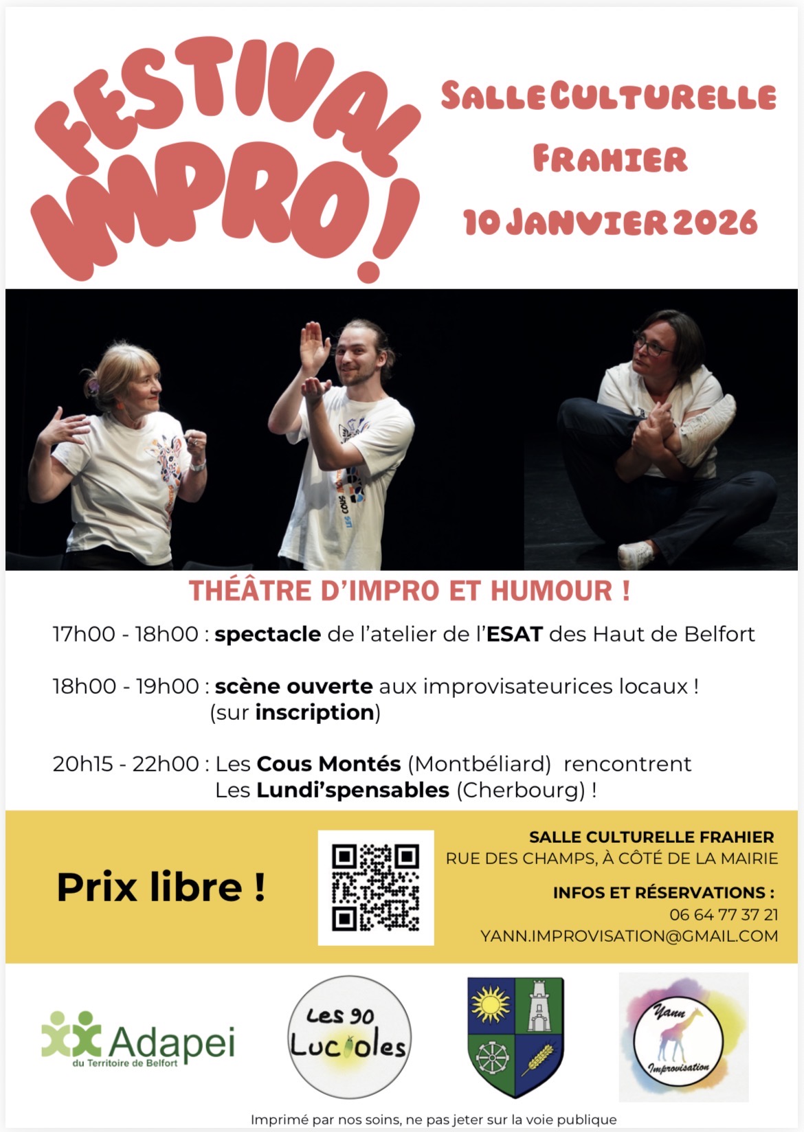 Yann Improvisation vous propose un Festival d'Impro ! Samedi 10 janvier à la salle culturelle de Frahier.
