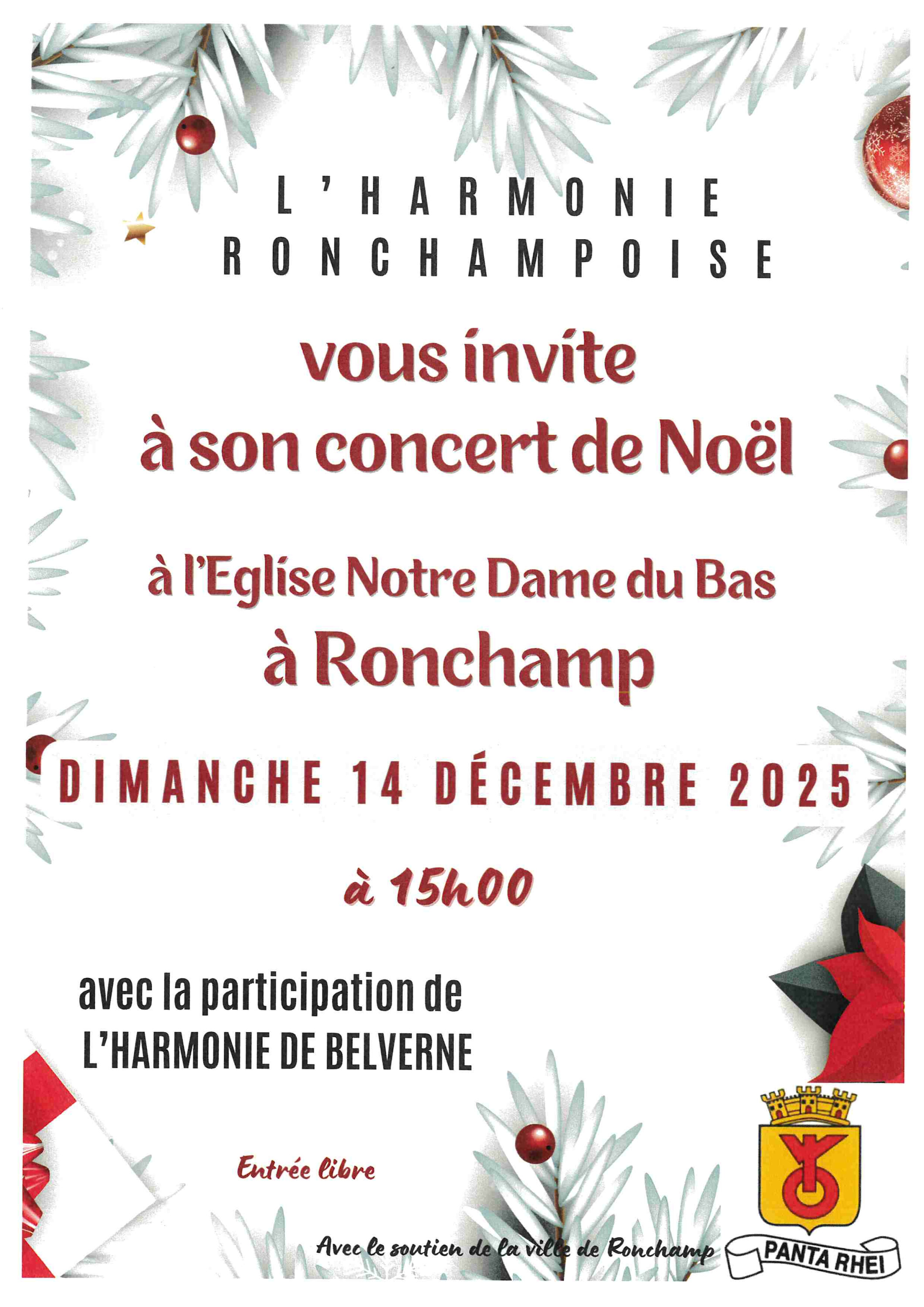Concert de Noël à l'église de Ronchamp avec l'Harmonie Ronchampoise et la participation de l'Harmonie de Belverne.